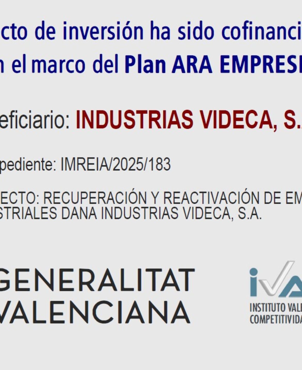 Subvención recibida por Industrias Videca del IVACE (Innovacion de procesos)