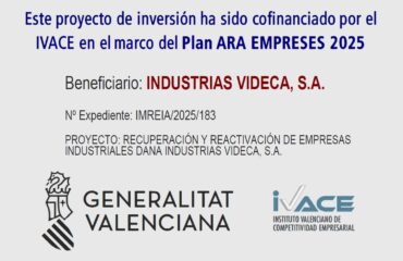 Subvención recibida por Industrias Videca del IVACE (Innovacion de procesos)